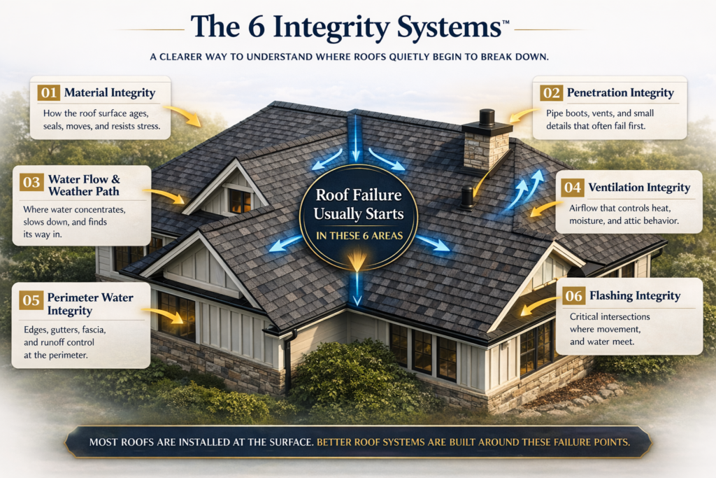 A roof is not just a surface. It is a system — and most failures begin in these six areas.